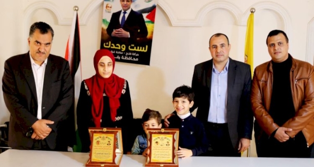 منحت حركة فتح بمحافظة رفح وسام التميز والابداع للطالبة الكفيفة أسماء أبو هلال لتفوقها وتميزها وتخرجها من الجامعة بمعدل(94.8 %)، كما منحت الشبل الشاعر رمضان أبو جزر الوسام في اطار تكريمهما على انجازاتهما .