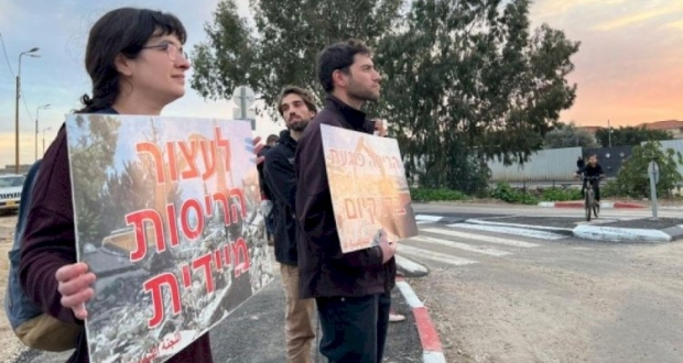 ورفع المتظاهرون لافتات منددة بسياسة الهدم، وبخاصة ضد رئيس بلدية الاحتلال باللد يائير رفيفو، ووصفوه بالـ"عنصري".