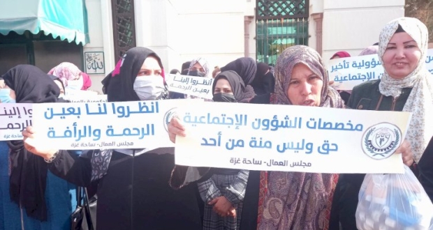 جاء ذلك خلال وقفة احتجاجية دعا لها مجلس العمال في حركة فتح ساحة غزة، احتجاجا على عدم صرف مخصصات الشئون الاجتماعية.