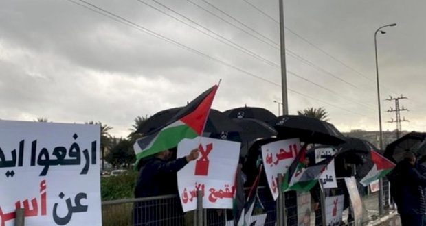 ورفع المشاركون الأعلام الفلسطينية ولافتات منددة بممارسات إدارة سجون الاحتلال القمعية، مؤكدين دعمهم للخطوات النضالية التصعيدية التي يقودها الأسرى في سجون الاحتلال.