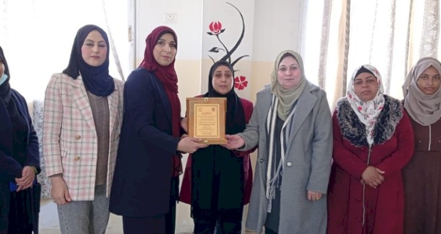 وفي نهاية اللقاء قدم الوفد درعاً تكريماً لأريج الأشقر والتي رحبت وثمنت هذه الزيارة مؤكدة على أننا نسعى لذات الهدف ومعاً وسوياً من أجل دعم وتمكين المرأة الفلسطينية ونيل كافة حقوقها.