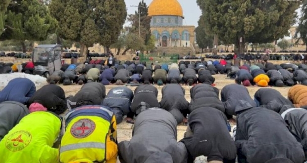 أدى آلاف المواطنين، اليوم الجمعة، صلاة فجر الجمعة الأولى من رمضان في المسجد الأقصى، تلبيةً للدعوات بإقامة نداء "الفجر العظيم".