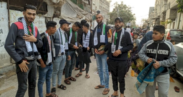 واستقبلت حركة الشبيبة الفتحاوية بمحافظة غزة جموع المصلين والمارة لتهنئتهم بحلول العيد