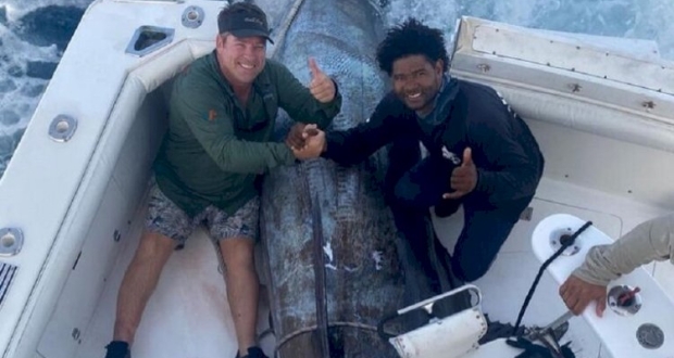 صارع ثلاثة صيادين من جنوب إفريقيا سمكة بلو مارلين العملاقة، والتي تعتبر أضخم سمكة على مر العصور، واستطاعوا اصطيادها أثناء رحلة صيد لمدة 6 أيام في جزر الرأس الأخضر.