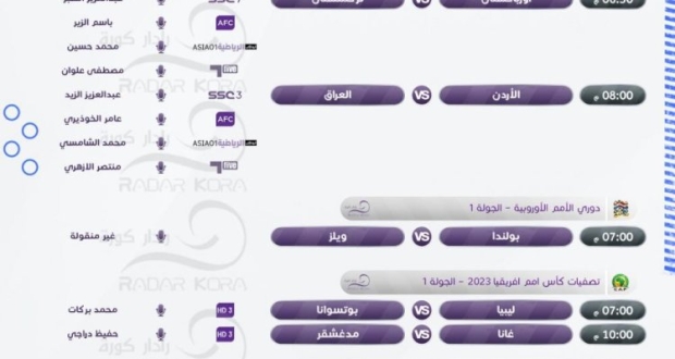 جدول أبرز مباريات الأربعاء في البطولات الدولية المختلفة