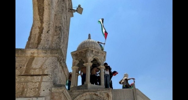 بعد الصلاة- رفع علم فلسطين في المسجد الأقصى