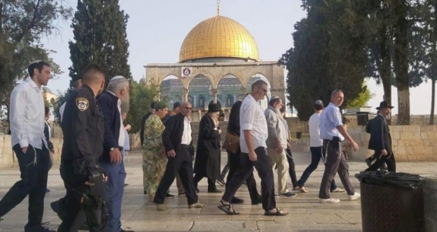 وكان مئات المستوطنين اقتحموا المسجد الأقصى من باب المغاربة، في ذكرى "خراب الهيكل"، وأدوا صلوات تلمودية و"السجود الملحمي"، كما ورفعوا علم الاحتلال خلال اقتحامهم للمسجد.
