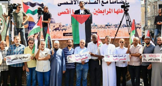 وجائت هذه المسيرة تنديداً بالاعتداءات الصهيونية المتواصلة بحق المدينة المقدسة وأهلها، ودعماً للمرابطين في المسجد الأقصى المبارك.