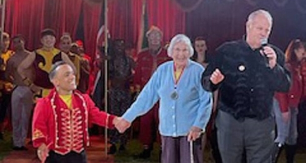 حققت امرأة بريطانية مسنة حلمها بالمشاركة في عرض رمي السكاكين الخطير في السيرك، بعد سنوات طويلة.