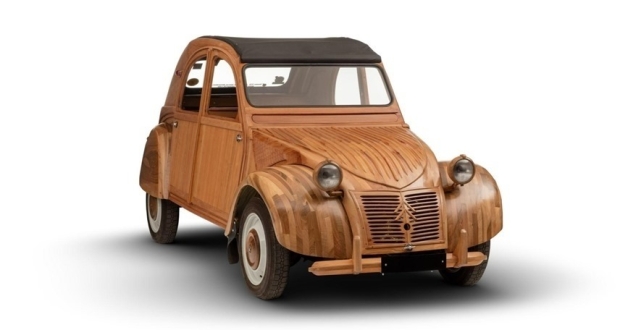 وصُنع هيكل سيارة "2 سي في"، وهو من نوع "أزكا" مصنوع سنة 1955، بالكامل من الخشب على يد النجار الفرنسي ميشال روبيار.