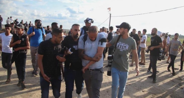 أصيب مصور وكالة "خبر" الفلسطينية للصحافة، الزميل الصحفي محمد صبح، مساء اليوم الأربعاء، بقنبلة غاز في يده أثناء تغطية المسيرات السلمية في مخيم ملكة شرق مدينة غزّة.