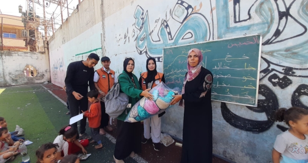 زار متطوعو عملية الفارس الشهم 3 ، مبادرات تعليم الطلاب في مراكز النزوح في المحافظة الوسطى بقطاع غزة.