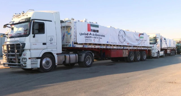 حيث وصلت 14 شاحنه مُحملة بـ 190 طن من المساعدات الإماراتية، ومن ضمنها الخيام والمواد الأٍساسية والطرود الغذائية والصحية ومستلزمات العائلات الأساسية، وأبرز الإحتياجات في وقت يعاني فيه سكان قطاع غزة من الجوع وعدم توفر الطعام.