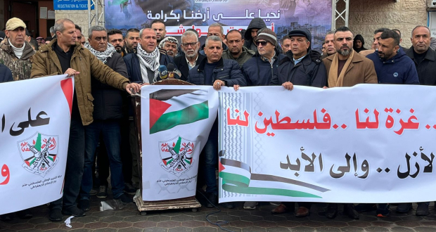 نظّم تيار الإصلاح الديمقراطي في حركة فتح اليوم وقفةً ومؤتمرًا صحفيًا في ساحة مستشفى شهداء الأقصى في دير البلح، أدان فيها التصريحات التي صدرت عن الرئيس الأميركي دونالد ترمب؛ والتي تحدث فيها عن رغبته في تهجير سكان قطاع غزة.