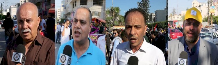 وقال صلاح العويصي أمين سر مفوضية العمل التنظيمي بحركة فتح ساحة غزة:"اليوم يخرج الآلاف من أبناء حركة فتح رفضاً لسياسة الضم الإسرائيلية، التي ستمزق أرضنا الفلسطينية، والتي ستستولي على أكثر من 30% من مساحة أرضنا في الأغوار، فهي سياسة قديمة جديدة يتبعها الاحتلال الصهيوني".