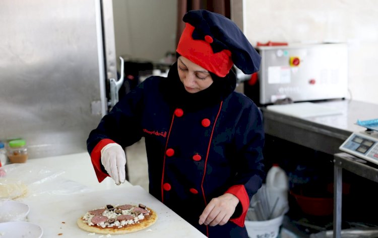 تعتبر العمصي الفتاة الأولى في رفح تعمل في مجال الطهي منافسة مع الذكور في هذا المجال.
