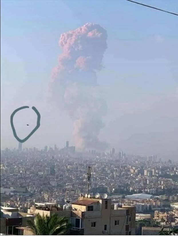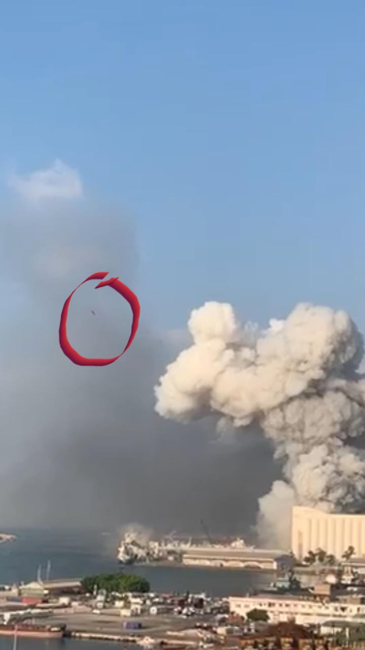 خامساً : بعض الصور أظهرت وجود طائرة حربية قريبة من المرفأ وهذا يتطلب الوقوف جيداً ومطولاً للبحث والتحري لغرض تواجدها في الأجواء قبل وبعد حدوث الانفجار .