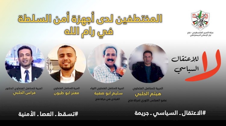 تقرير: الاعتقال السياسي جريمة سياسية أجهزة السلطة تعتقل أبناء فتح في الضفة الغربية