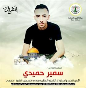 الشهيد الفارس/ سمير حميدي الأسير المحرر وأحد كوادر الشبيبة الطلابية بجامعة فلسطين التقنية - خضوري