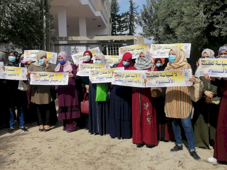 ورفعت المشاركات لافتات تندد بالاعتقال السياسي كتب عليها "لا لسياسة تكميم الأفواه"، وأخرى"من حقنا أن نعيش بكرامة"،وناشدت الأخوات من خلالها الضغط على قيادة السلطة للإفراج الفوري عن المعتقلين السياسيين.