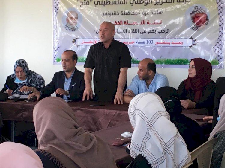 حركة فتح بمحافظة خانيونس تنظم ندوة سياسية بعنوان :103 عام وعد بلفور جريمة مكتملة الاركان