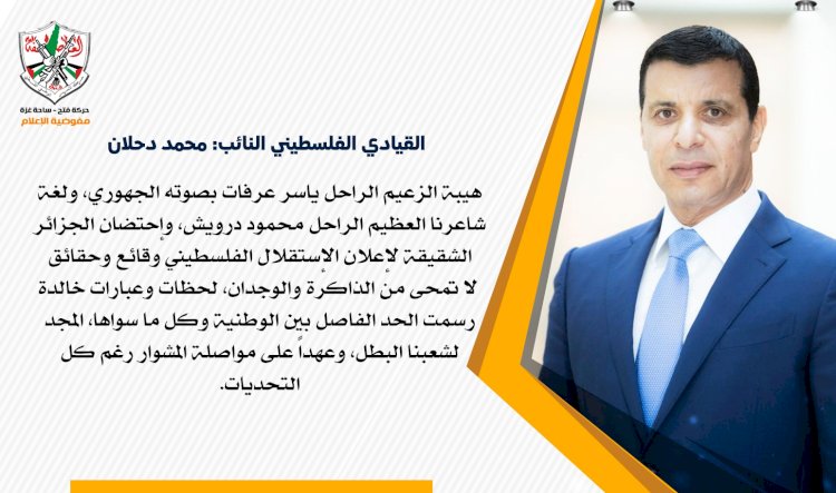 دحلان: هيبة الزعيم الراحل ياسر عرفات وإعلان الإستقلال وقائع وحقائق لا تمحى من الذاكرة والوجدان