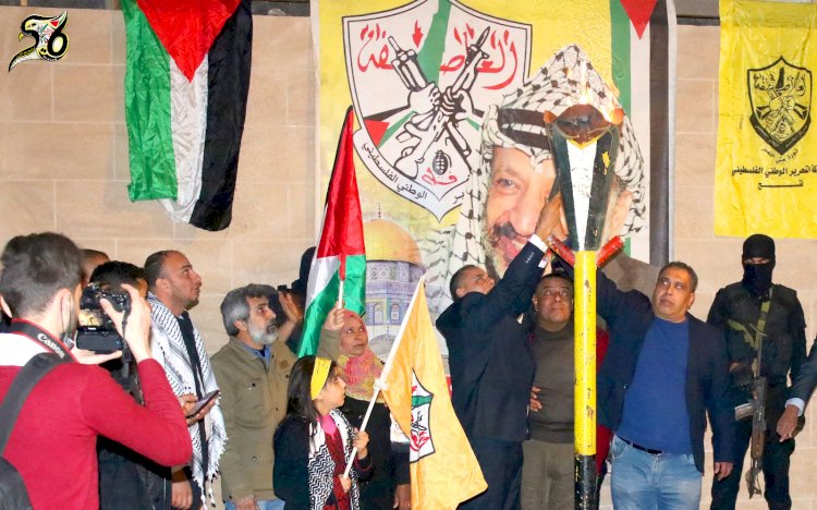 شاهد: حركة فتح في ساحة غزة توقد شعلة انطلاقة الثورة الفلسطينية بمحافظات القطاع