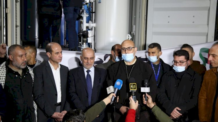 وقال:"هذه لحظات سعيدة ونحن نستقبل محطة الأكسجين ٢ الطبية في المستشفى الاندونيسي شمال قطاع غزة، فهي اول المحافظات التي انتشر فيها فايروس كورونا في غزة.