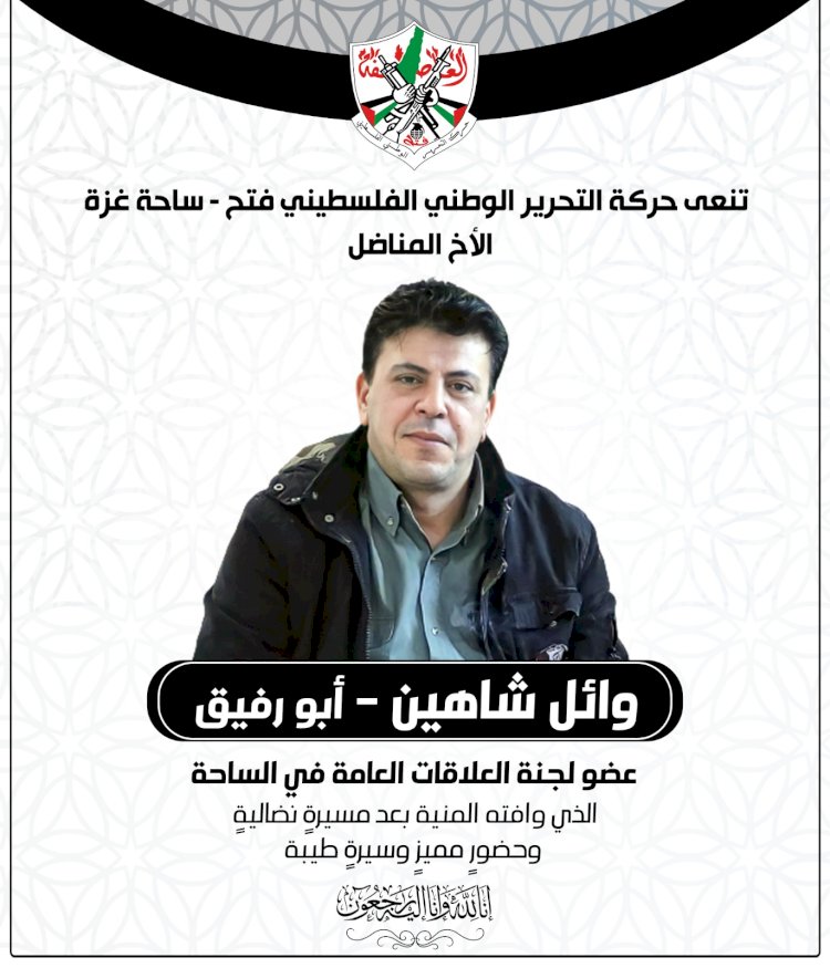 صورة: حركة فتح بساحة غزة تنعي المناضل وائل شاهين "أبو رفيق"