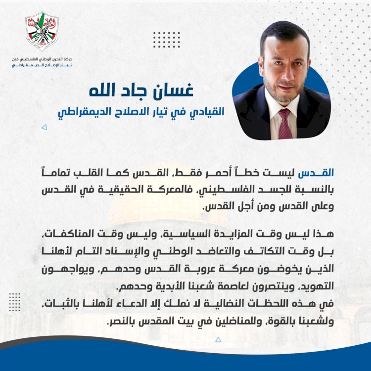 انفو: جادالله: المعركة الحقيقية في القدس ومن أجلها