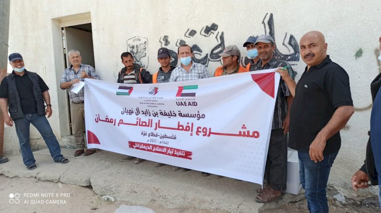مكرمة من مؤسسة خليفة بن زايد .. تيار الإصلاح الديمقراطي بمحافظة غزة ينفذ مشروع "إفطار صائم"