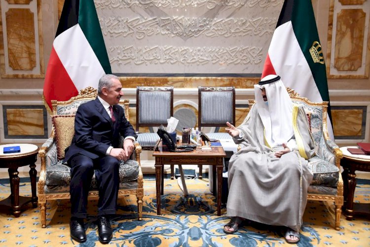 ونقل اشتية الى أمير الكويت تحيات السيد الرئيس محمود عباس والشعب الفلسطيني، وللقيادة والحكومة والشعب الكويتي.