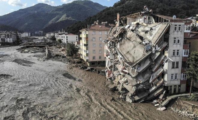وتسببت الأمطار الغزيرة التي سقطت في مقاطعات بيرتين وكاستامونو وسينوب وصامسون في فيضانات شديدة جرفت السيارات ودمرت المنازل، ولا زالت تبحث فرق الطوارئ والإنقاذ على مدار الساعة عن ناجين من أنقاض المباني المنهارة والمنازل والأقبية التي غمرتها المياه.