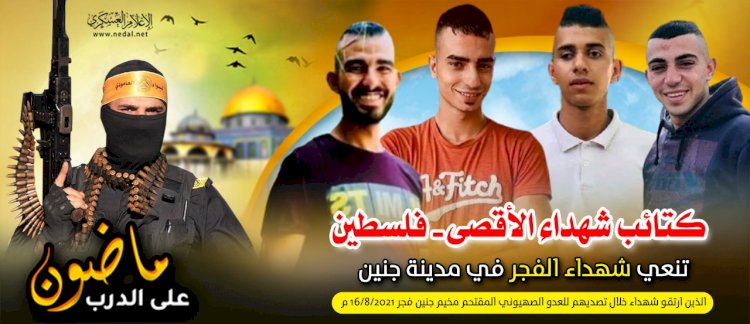 والذين استشهدوا صباح اليوم الاثنين 16 أغسطس 2021م، بعد اشتباك بطولي أسطوري مع قوات كبيرة من جيش العدو الصهيوني، التي اقتحمت جنين فجر اليوم فهب أبطال المخيم لصد القوة الصهيونية، فواجهوا العدو بكل بسالة قبل أنّ يُسلم هؤلاء الأبطال أرواحهم إلى بارئها.