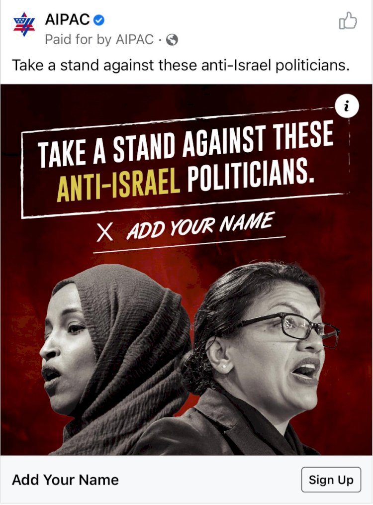 صعدّت لجنة الشؤون العامة الأمريكية الإسرائيلية "ايباك" من حملتها التحضيرية ضد النائبتين في الكونغرس رشيدة طليب والهان عمر؛ نتيجة تصريحاتهن المنددة بإجراءات سلطات الاحتلال الإسرائيلي ضد الشعب الفلسطيني، ورفضا لكل السياسات العنصرية التي تمارس بحقهم.