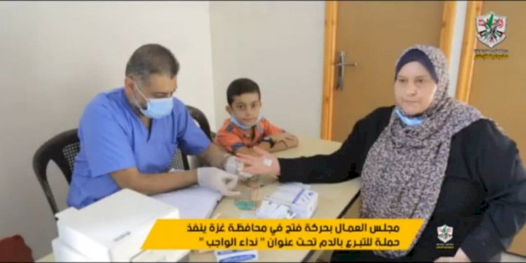 بالفيديو.. مجلس العمال بحركة فتح ينفذ حملة للتبرع بالدم تحت عنوان "نداء الواجب" في محافظة غزة