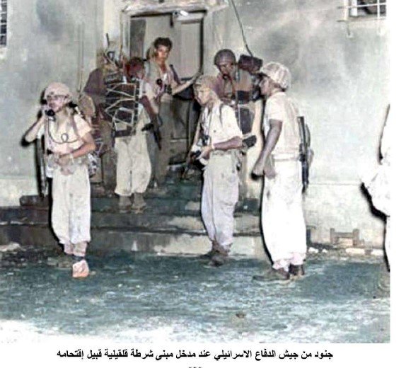 عند وصول كتيبة (الموت 101) بقيادة آرئيل شارون، إلى مركز الجيش الأردني، قاموا بخلع البوابة الرئيسية للمركز، واشتبكوا مع الجيش الأردني، ثم اقتحمت قوات ثانية من ناحية الجهة الشرقية، وحسب شهود عيان، فإن المركز لم يتعرض للقصف بالدبابات أو الطائرات، وإنما تم تفجيره بعد تفخيخه، حيث دوى انفجار قوي سُمع في كافة أنحاء قلقيلية.