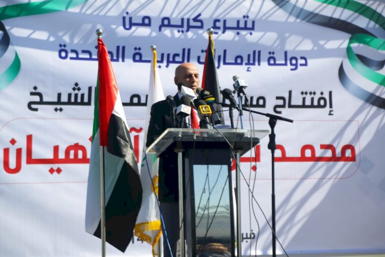 وقال خلال الافتتاح، "الشعب الفلسطيني ليس ناكرًا للجميل، ويعرف كيف يشكر من يقف إلى جانبه، فنحن هنا لكي نقول للإمارات قيادة وحكومة وشعبا شكرًا لكم".
