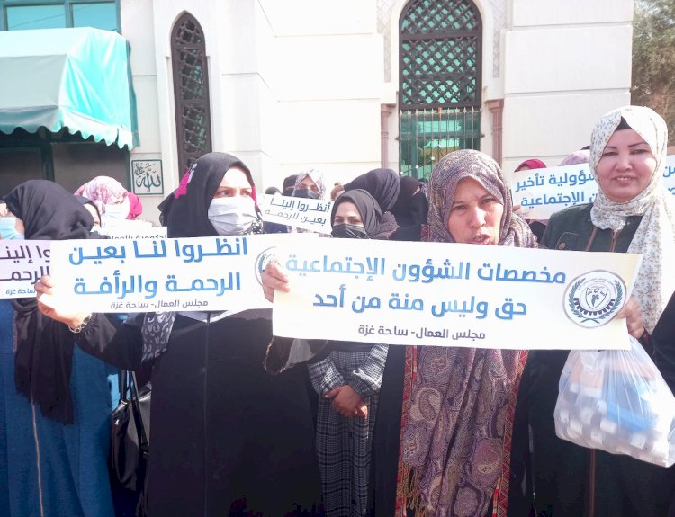 شارك مئات العمال والأسر الفقيرة في وقفة احتجاجية، أمام وزارة التنمية الاجتماعية بمحافظة غزة، رفضاَ لتأخر صرف المستحقات المالية لمنتفعي "الشؤون الاجتماعية".