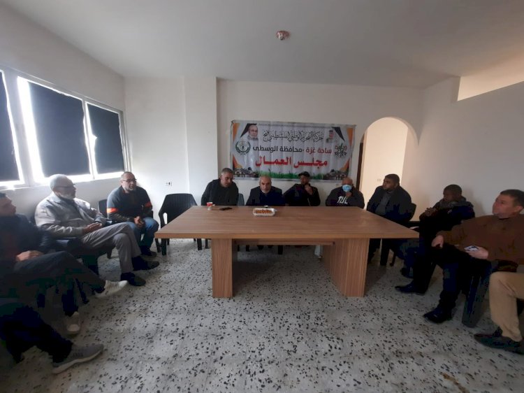 نظم مجلس العمال في حركة فتح بالمحافظة الوسطى، لقاءً حوارياً بعنوان "مستجدات العمل التنظيمي والنقابي".