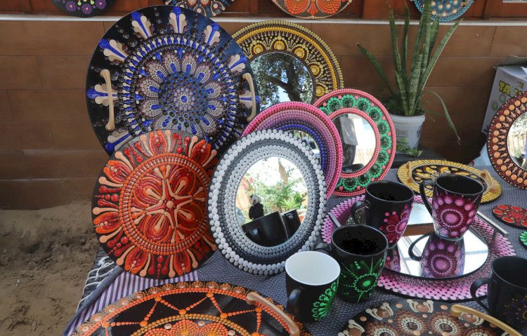 بالصور: فلسطينيون يحضرون معرض للمشغولات اليدوية بعنوان "البداية" في مدينة غزة