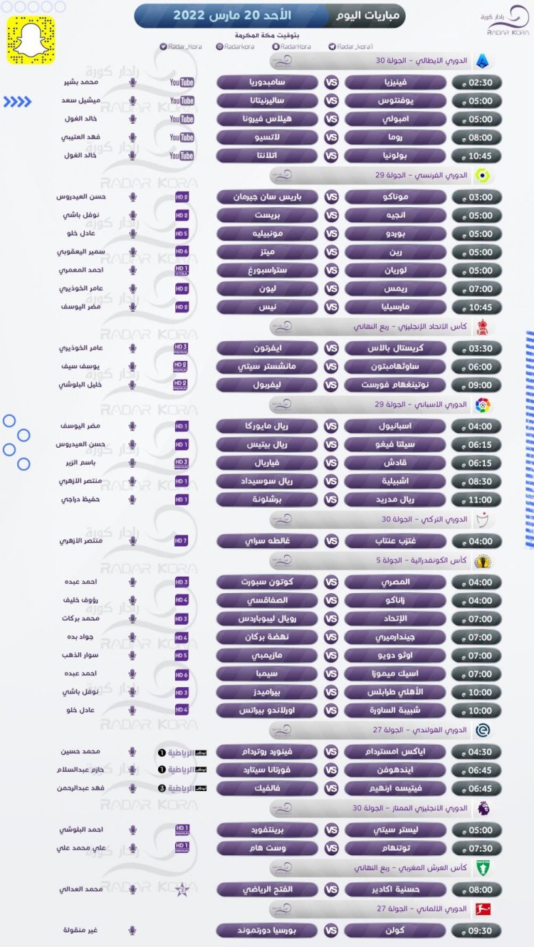 تتجه أنظار عشاق كرة القدم اليوم الأحد لعدة مباريات في الدوريات، والكؤوس الأوروبية، وبطولة الكونفدرالية الإفريقية.