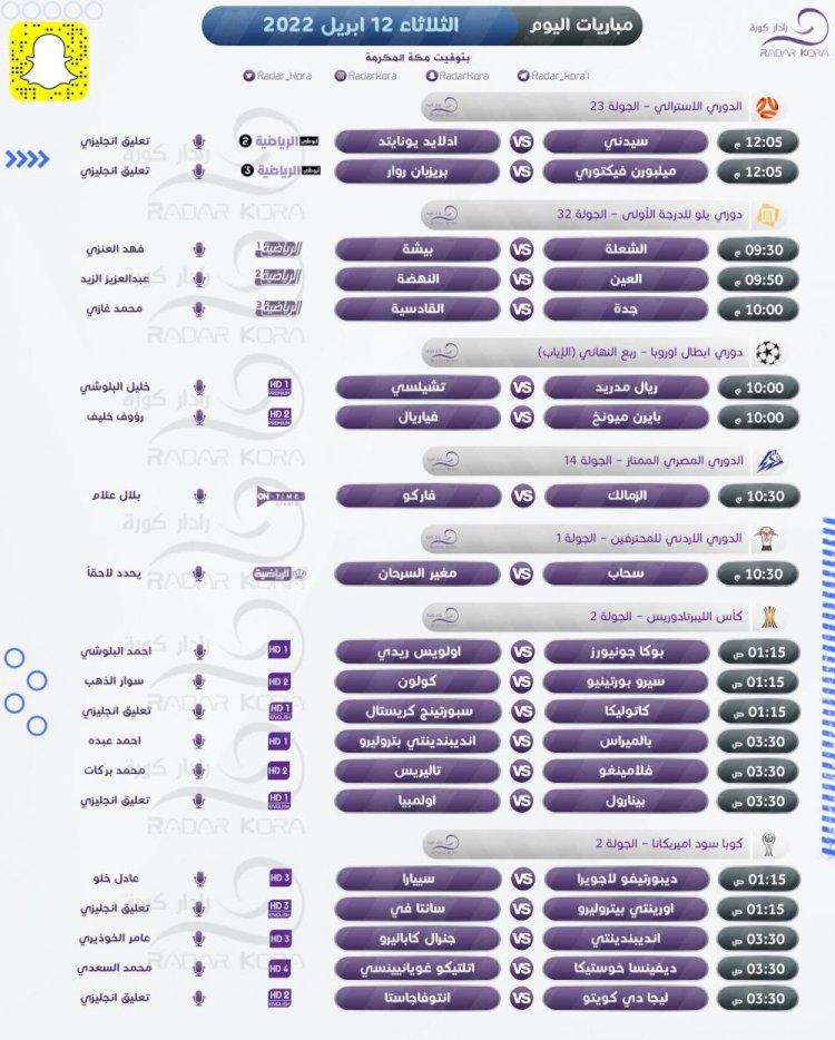 جدول أبرز مباريات الثلاثاء بأبطال أوروبا والدوري المصري