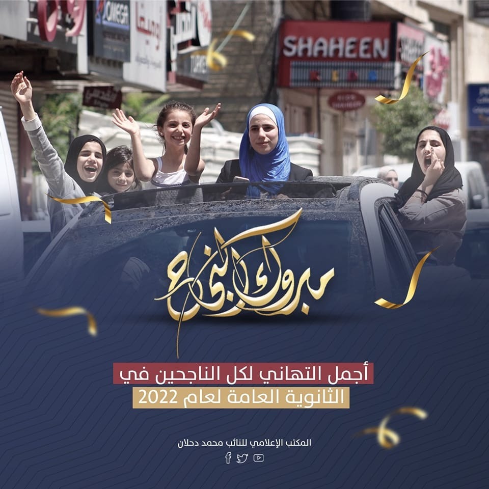 تقدم النائب محمد دحلان قائد تيار الإصلاح الديمقراطي بحركة فتح، اليوم السبت بالتهنئة القلبية الحارة للناجحين من طلبة الثانوية العامة لهذا العام، متمنياً لهم مستقبلاً مشرقاً في خدمة شعبهم وقضيتهم الوطنية العادلة.