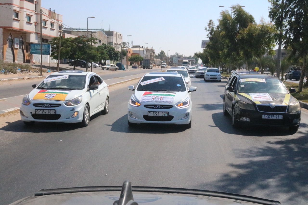 بالصور: انطلاق مواكب أوائل الثانوية العامة من محافظات غزة استعداداً لتكريمهم