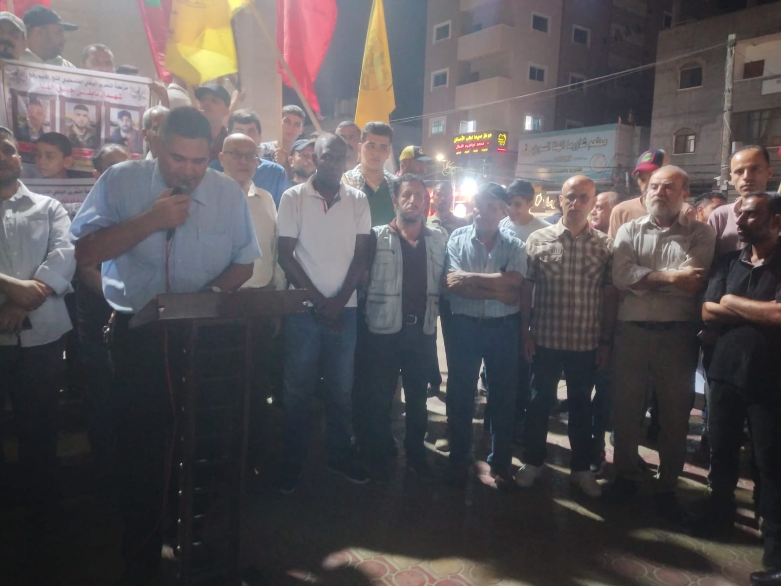 لجنة العلاقات الوطنية بحركة فتح في محافظة رفح تشارك بوقفة منددة بالعدوان الإسرائيلي على غزة