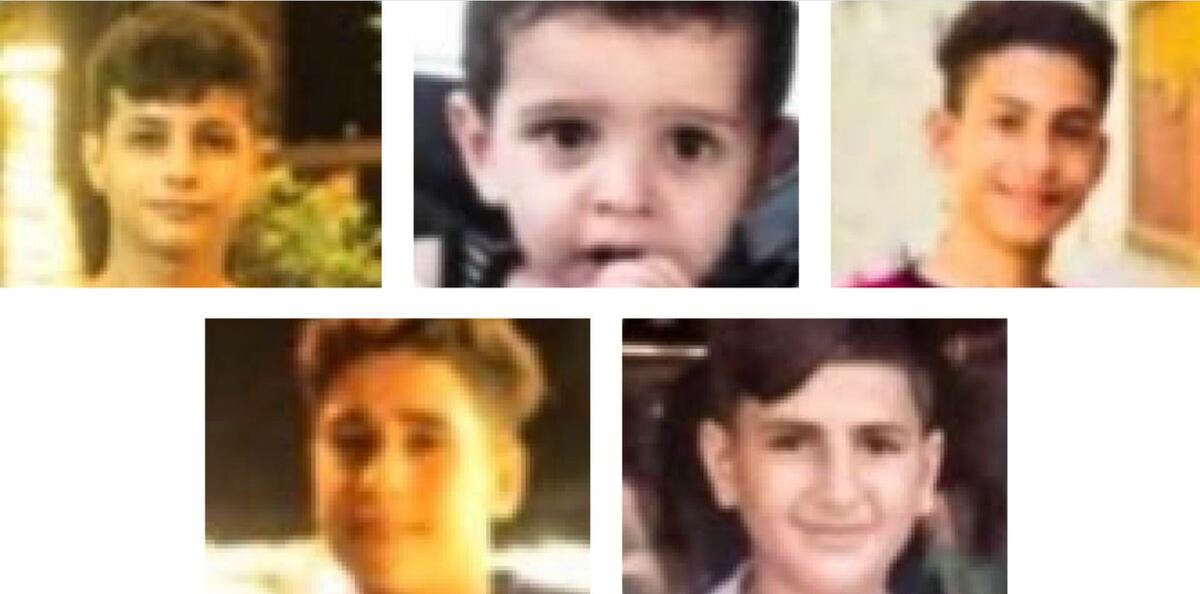 والأطفال الشهداء هم: جميل إيهاب نجم (13 عامًا)، جميل نجم الدين نجم (4 أعوام)، حامد حيدر نجم (16 عامًا)، محمد صلاح نجم (17 عامًا)، ونظمي فايز أبو كرش (14 عامًا).