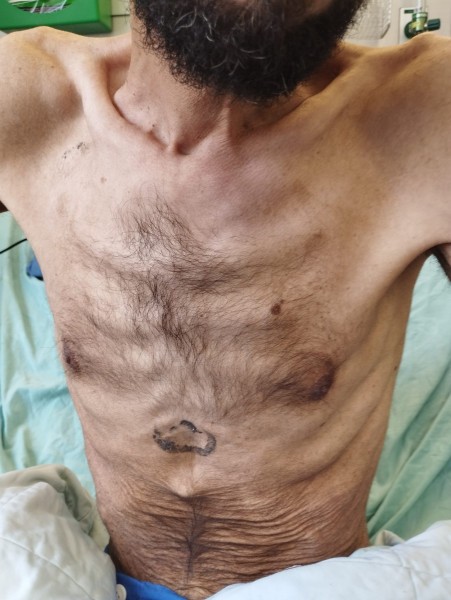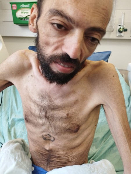 وانتشرت مساء اليوم الأحد، صور الأسير المضرب عواودة البالغ من العمر "40 عاما"، حيث ظهر بجسد نحيل يشبه الهيكل العظمي نتيجة إضرابه عن الطعا لليوم الـ 169 على التوالي