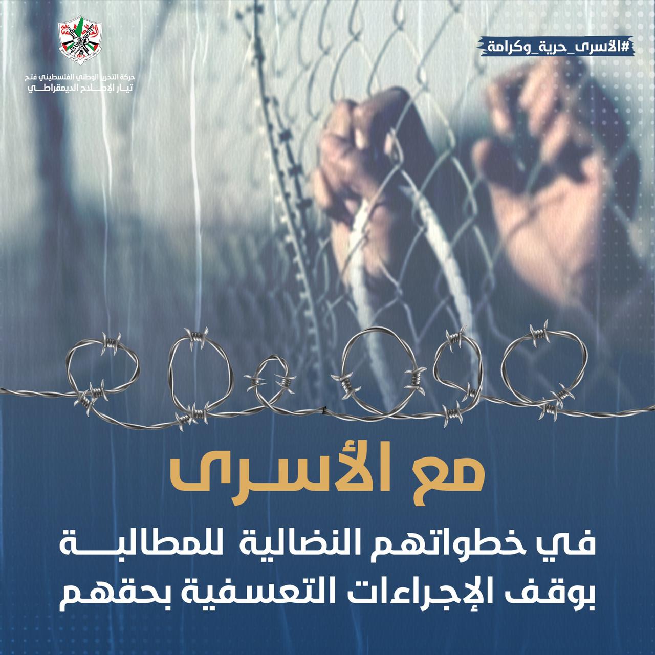 تيار الإصلاح الديمقراطي بحركة فتح يُطلق اليوم حملة إعلامية دعماً للأسرى ويدعو للتغريد على وسم #الأسرى_حرية_وكرامة