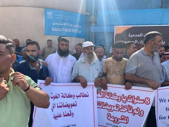 وتواصل لجنة اللاجئين بساحة غزة بشكل مستمر مساندة ملف متضرري عدوان 2014 ، حيث تم حشد الشباب والشيوخ والنساء للمشاركة في هذه الوقفات المطلبية الاحتجاجية .